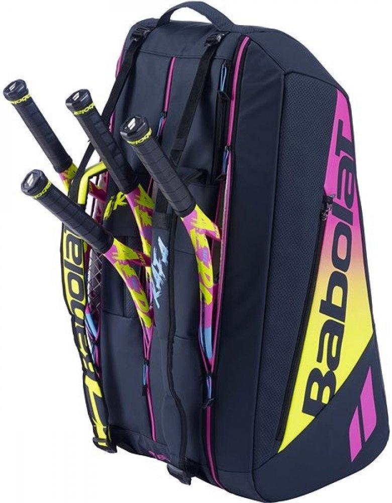 Bag Babolat Pure Aero RAFA X12 2023, vytvořený Rafou a pro Rafu, nabízí to nejlepší pro závodní hráče, kteří hledají dokonalou kombinaci stylu a výkonu. Tato plně izolovaná taška má 3 velké přihrádky, což znamená, že můžete uspořádat a chránit až 12 raket a 2 páry bot v jejich vlastní části.