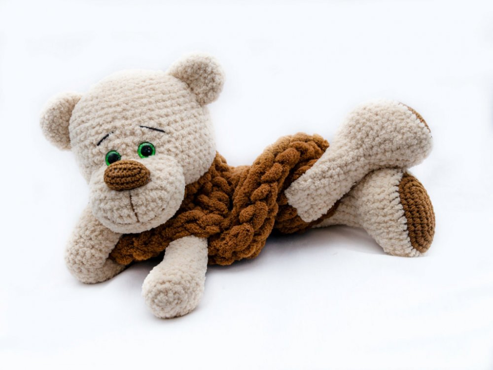 Háčkovaný pyžámkožrout cca 60 cm dlouhý.