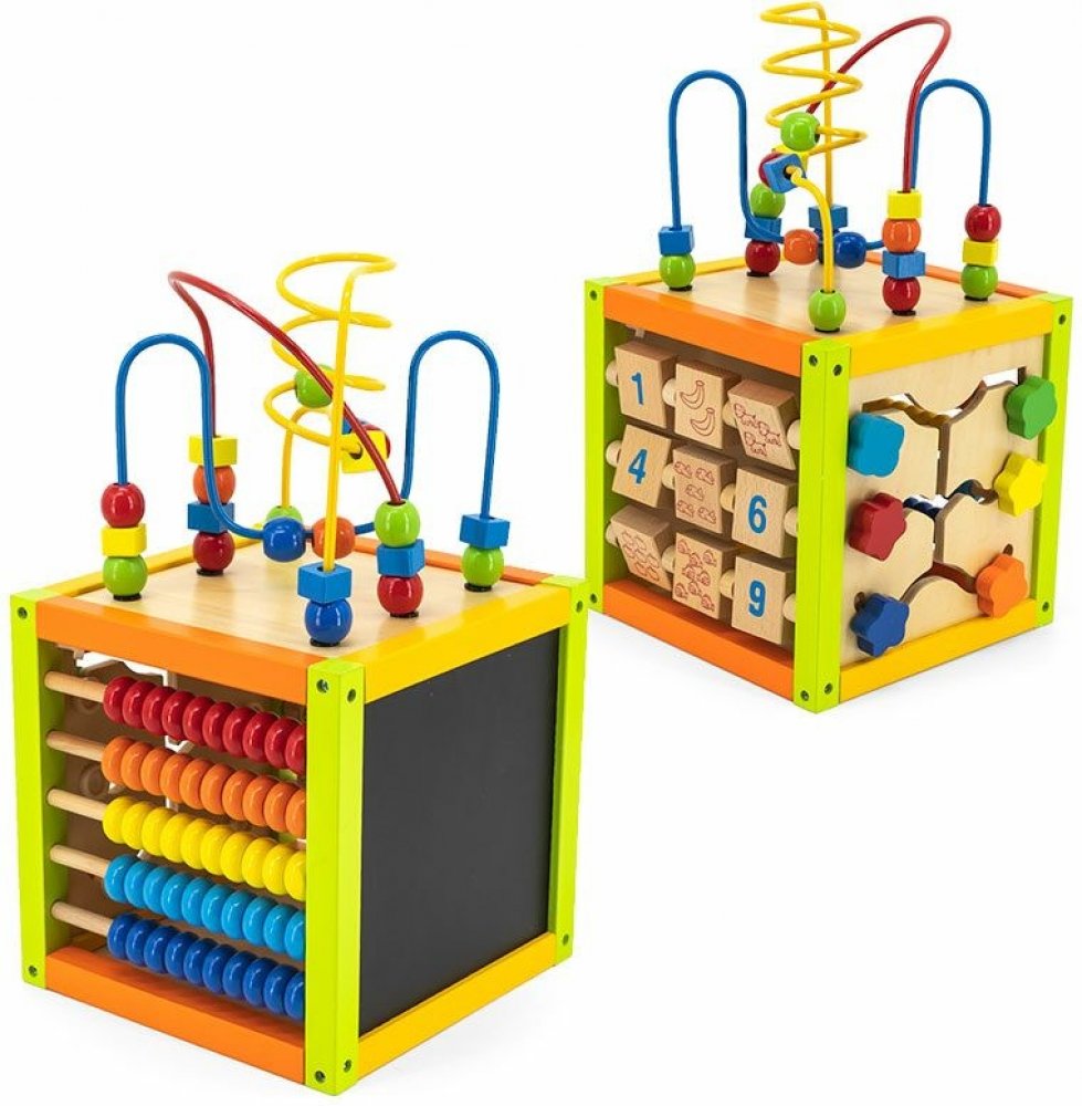 Labyrint podporuje jemnou motoriku, manipulaci a koordinaci rukou a očí. Děti se rozvinou v logice, prostorovém a kritickém myšlení a naučí se pochopit příčinu a následek. Motorický labyrint zabaví všechny malé šikovníky Velká barevná zvířátka se snadno posouvají po drahách Vyrobeno z kvalitního a odolného dřevěného materiálu, netoxické