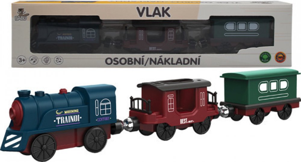 Představujeme vám úžasný plastový vláček BABU, který nadchne každého malého železničního nadšence! Tato parní osobní lokomotiva s vagóny je dokonalým dárkem pro vaše dítě, které si rádo hraje s vláčky a staví vlastní železniční tratě. Náš vláček BABU je poháněn dvěma AAA bateriemi 1,5V (nejsou součástí balení), díky nimž se může pohybovat dopředu i dozadu. Směr jízdy snadno určíte pomocí přepínače umístěného na střeše lokomotivy. Uvedení do provozu je velmi jednoduché - stačí jen zapnout přepínač a vláček se rozjede. Balení obsahuje jednu lokomotivu a dva vagóny, které jsou propojeny magnety. To umožňuje snadné připojení dalších vagónů a vytvoření dlouhé vlakové soupravy. Vláček BABU je navíc kompatibilní se všemi dřevěnými vláčkodráhami, takže ho můžete snadno integrovat do již existujících kolejišť. Tento vláček je vyroben z kvalitního a odolného plastu, který vydrží i při náročnějších dětských hrách. Je vhodný pro děti od 3 let a splňuje všechny bezpečnostní normy. Pořiďte svému