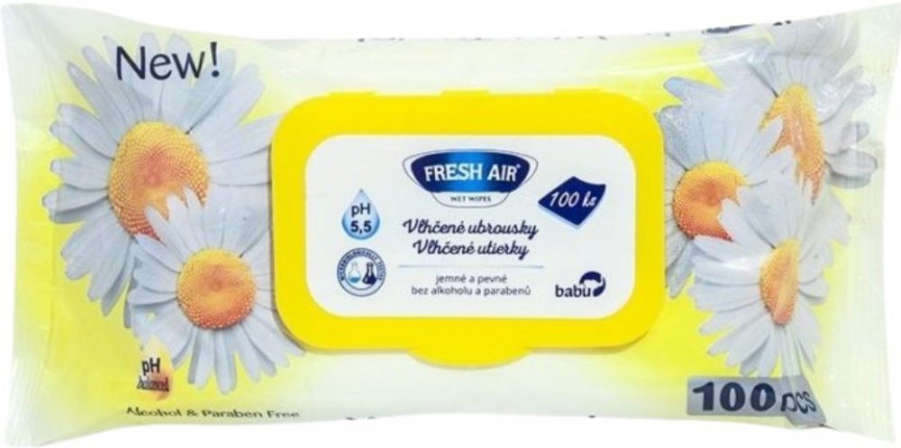 Fresh Air (Babu) Vlhčené ubrousky Heřmánek 100 ks jsou praktickým a nepostradatelným pomocníkem pro celou rodinu. Objednejte si ještě dnes a užijte si pocit čistoty, svěžesti a klidu!