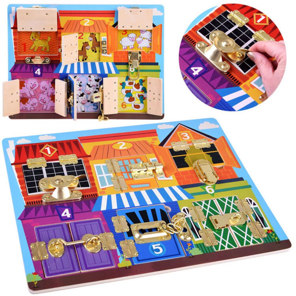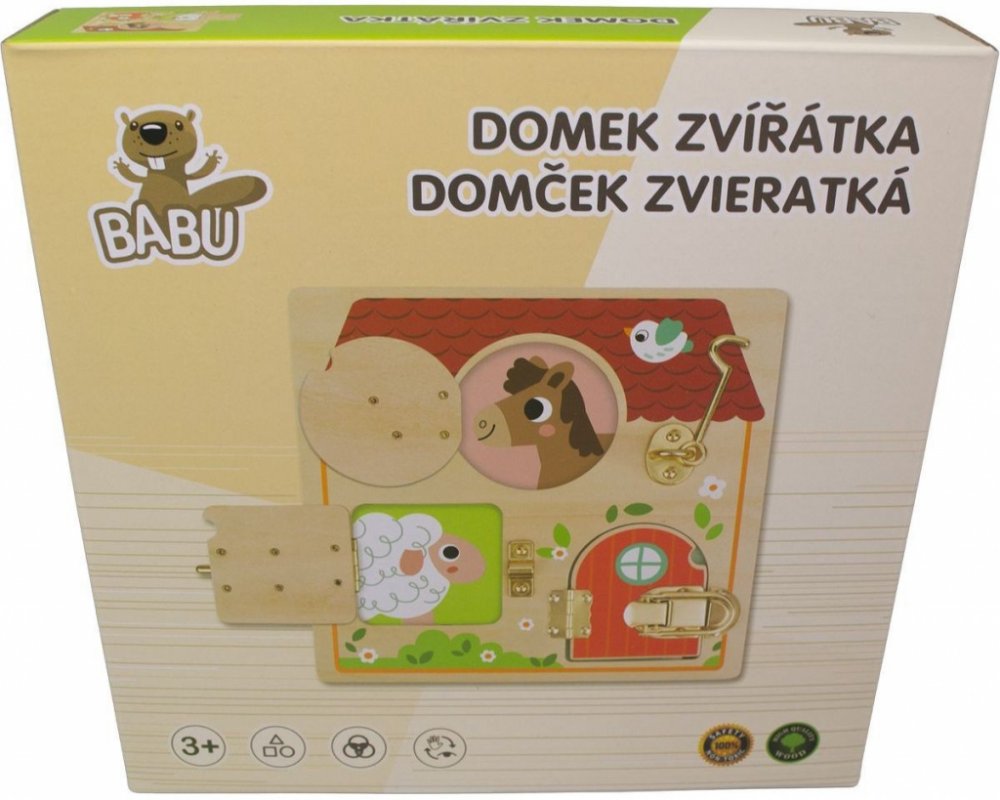 Babu vzdělávací tabule se zámky domek se zvířaty