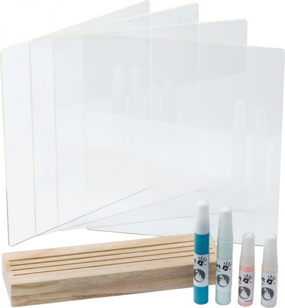 Dřevěný stojánek Baby Art Family Prints nabízí čtyři průhledné panely pro barevný otisk rukou celé vaší rodiny. Vyrobte si krásnou dekoraci, která vám zároveň pomůže uchovat vzpomínky na krásné období, když byly vaše děti malé.