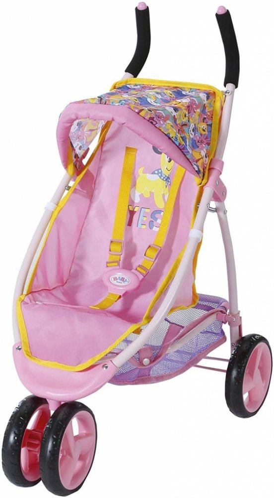 BABY born se se svojí maminkou a tatínkem moc ráda prohání po parku. Tudy rovně, zahnout k rybníčku a tady ostře doprava. Jejda, kytičky, otočit! Na hřiště! Utíkej, co nejrychleji můžeš. Tento mrštný tříkolový kočárek tohle všechno zvládne. Během náročných jízd je BABY born v kočárku pevně připoutaná bezpečnostním pásem.