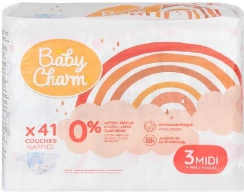 Plenky Baby Charm Super Dry Flex Midi poskytují citlivé pokožce dítěte nejvyšší péči a ochranu. Díky hypoalergennímu složení, vynikající savosti a prodyšnosti zaručují materiálům vašemu dítěti po celý den suchost a pohodlí a také úsměv na tváři.