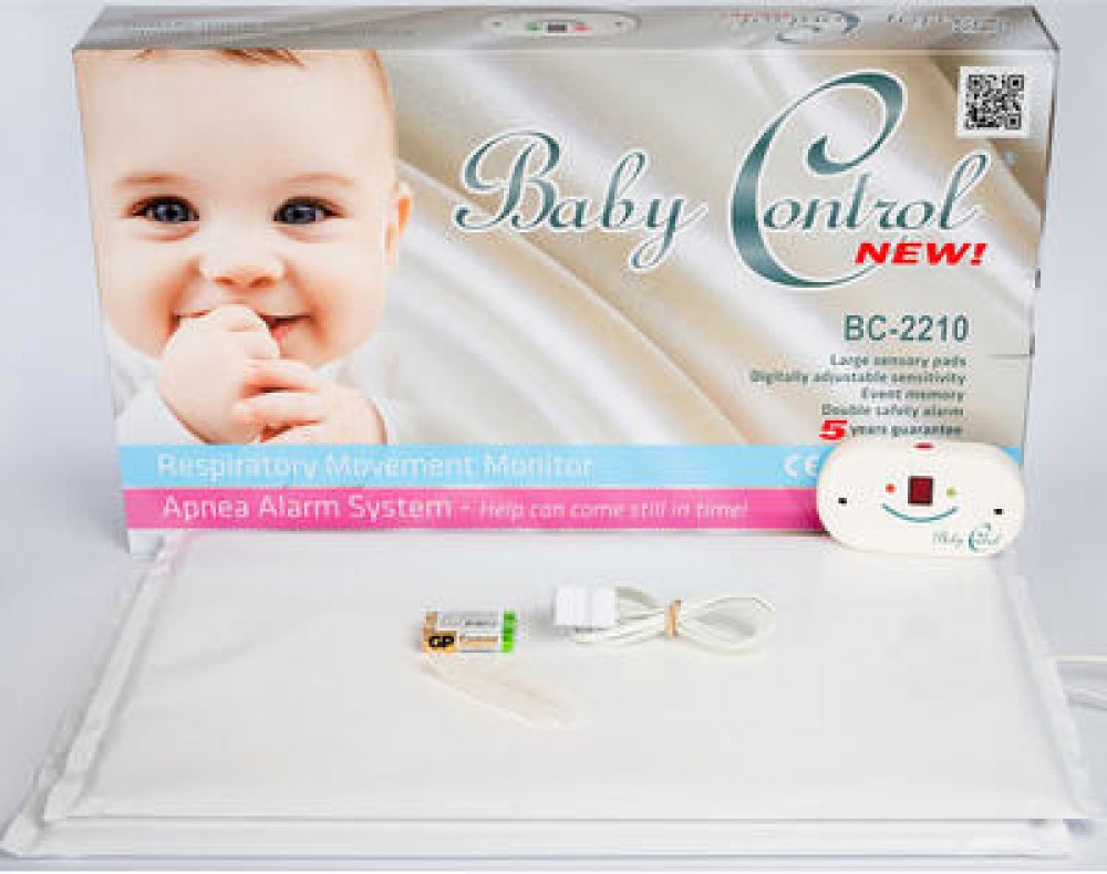 Během prvního roku života může u dítěte dojít k nepravidelnému dýchání nebo dokonce k zástavě dechu. Tyto projevy mohou být příznakem nachlazení, vysoké horečky nebo jiného chorobného stavu. V extrémním případě to však může souviset s S.I.D.S. (syndrom náhlého kojeneckého úmrtí), což je stále nejčastější příčinou úmrtí kojenců do 1 roku věku. Tento syndrom nelze diagnostikovat předem a ani moderní medicína doposud nepřišla s žádnými léčebnými prostředky či řešením. Přístroj Baby Control je jedinečný bezpečnostní systém, který pomáhá zachraňovat kojence. Je to monitorovací zařízení, které může rodičům pomoci zdolat nebezpečí dýchacích potíží.Splňuje veškeré evropské požadavky na bezpečnost, zdravotní nezávadnost a ochranu životního prostředí, které se na výrobek vztahují. Popis: Monitor dechu Baby Control nepřetržitě sleduje dýchání dítěte ležícího v dětské postýlce, kolébce, kočárku, atd.Senzorová podložka umístěná přímo na roštu pod matrací snímá dýchací pohyby dítěte, informace pak předává řídící jednotce, která vyhodnocuje naměřené hodnoty.Monitor dechu Baby Control detekuje případnou zástavu dechu.V případě nebezpečné situace, tj. v případě, že se hodnota dýchacích pohybů dítěte nachází déle než 12 vteřin pod nastavenou prahovou úrovní detekce (viz Nastavení prahové úrovně detekce), spustí Monitor dechu Baby Control hlasitý poplach.Monitor dechu Baby Control však v žádném případě neumí do vzniklé nebezpečné situace zasáhnout. Vlastnosti: Detekce se provádí přes matraci. Monitor dechu Baby Control není v bezprostředním kontaktu s miminkem. Jeho používání neovlivňuje životní podmínky miminka a rodiny. Je nenápadný a používá se velmi jednoduše. Vynikající citlivost v bočním směru. V případě, že miminko neleží přesně na senzorové podložce, detekuje monitor dechu Baby Control i dýchací pohyby přicházející z boční strany, proto ani v tomto případě není nutné obávat se nedostatečného snímání. Jedinečně velká monitorovací plocha. Rozměr jedné senzorové podložky je 300×500 mm. Monitory dechu Baby Control disponují v závislosti na typu jednou nebo dvěma senzorovými podložkami. Obavy z přesunutí se miminka mimo snímací plochu je možné snížit použitím typu s více senzorovými podložkami. Variabilní umístění senzorových podložek. Senzorovou podložku můžete umístit i na dočasném lůžku miminka, ke kterému stačí přenést jen řídící jednotku. Možnost použití ke každému typu matrace a roštu. Senzorová podložka monitoru dechu Baby Control se umísťuje přímo na rošt postýlky a je možné bezpečně ji použít ke všem matracím bez omezení materiálu a tloušťky. Digitálně nastavitelná prahová úroveň detekce. Několika stisky tlačítka je možné nastavit prahovou úroveň detekce dýchacích pohybů dítěte, která nejvíce odpovídá prostředí. Digitální zobrazení intenzity dýchacích pohybů. Na displeji, dobře viditelném i ve tmě (svítící), je možné sledovat intenzitu dýchacích pohybů miminka na stupnici 0–9. Tak je možné jediným pohledem zjistit, zda je monitor dechu Baby Control vhodně nastaven pro dýchání miminka. Monitor dechu Baby Control umí přehrát události posledních devíti minut v jednominutových krocích. V reálném čase přehraje jím zaznamenané události z digitální paměti, což může poskytnout důležité informace o okolnostech případného zastavení dýchání. Dvojitá (bezpečnostní) siréna. Monitor dechu Baby Control je vybaven dvojitou bezpečnostní sirénou. Sledování napětí baterie. V případě nízkého napětí baterie upozorní monitor dechu Baby Control při zapnutí na výměnu baterie. Obsah balení: 1 ks –řídící jednotka 2 ks –senzorová podložka obalená plastickým povrchem (bez žádných ftalátů dle evropské normy) 2 ks – AA alkalické baterie 1 ks – Návod k použití DVD – První pomoc dětem Technické údaje: Řídící jednotka BC-2210: Napájení 3V, 2×1,5V AA alkalické baterie Rozměry 155×90×37 mm Hmotnost 155 g Snímací jednotka BC-2210: Doporučená váha dítěte min. 2 kg do max. 20 kg Rozměry 500×305×15 mm Hmotnost 750 g