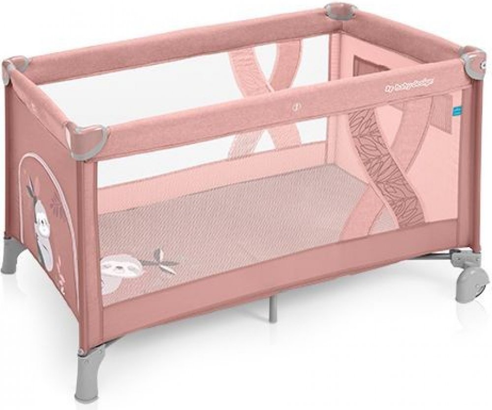 Funkční cestovní postýlka Simple má boční vchod, kapsy na drobnosti a měkkou matraci. Přátelské potisky lenochodů a vysoce kvalitní látky zvyšují estetiku postele a pohodlí dítěte.