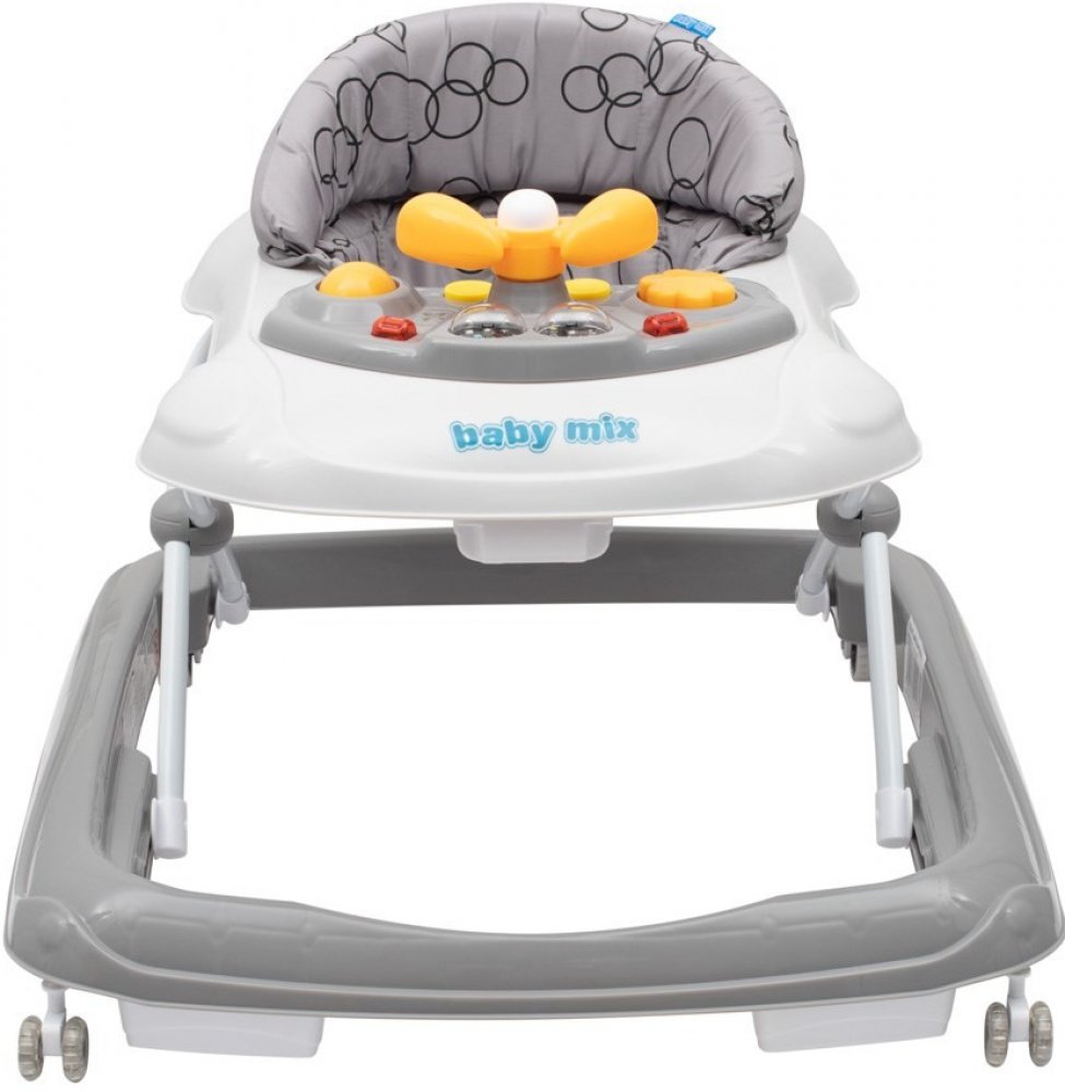 Moderní chodítko Baby Mix je skvělým pomocníkem při prvních krůčcích dítěte. Nabízí maximální pohodlí, zábavu a bezpečnost. Díky ergonomicky tvarovanému sedadlu podporuje správné držení těla, zatímco multimediální panel se světelnými a zvukovými efekty dítě motivuje k pohybu i hře.