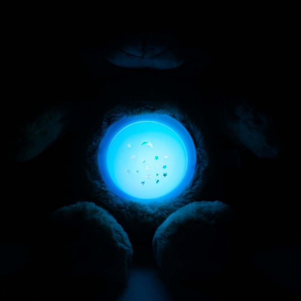 Medvídek má totiž na bříšku projektor, kterým dokáží na stropě dětského pokojíčku rozzářit a vykouzlit noční oblohu plnou hvězd. Zvládnou to hned v 6 barvách a třech rychlostních režimech.