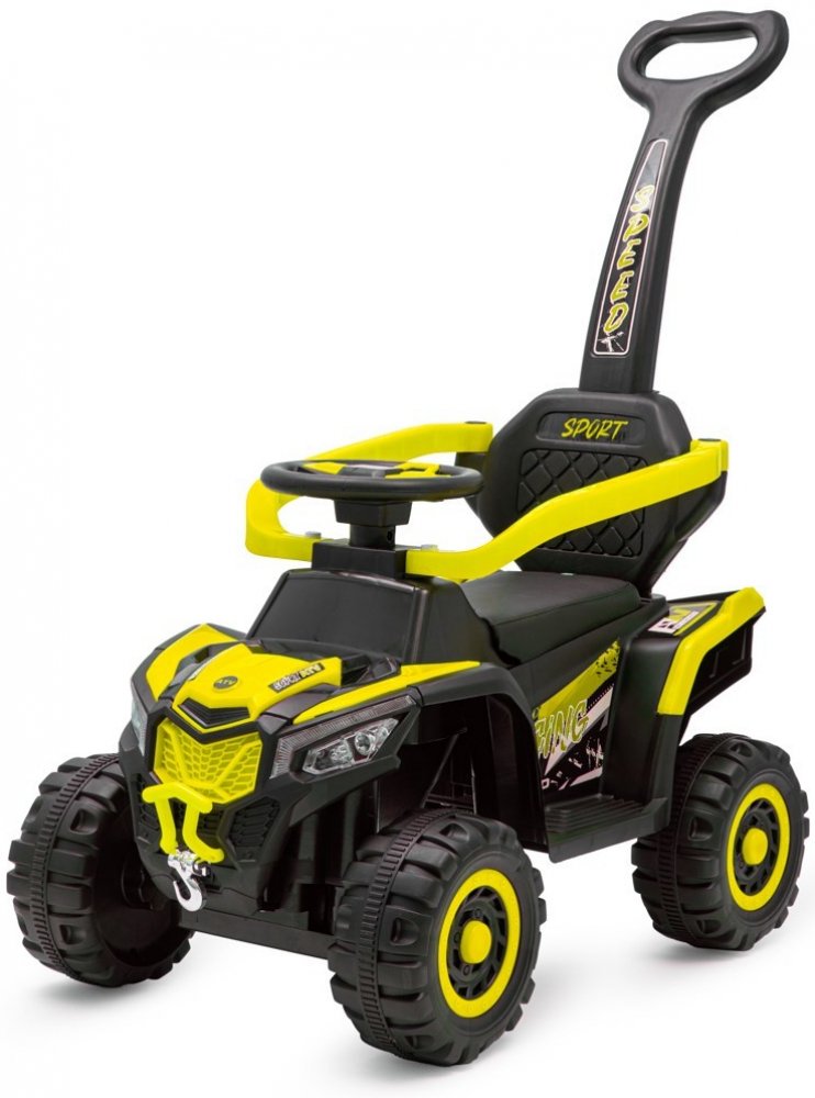 Ruggy se pyšní atraktivním terénním vzhledem inspirovaným off-road vozidly. Jeho masivní konstrukce, sportovní linie a dynamické barvy jistě zaujmou každé zvídavé dítě. Pohodlnou jízdu navíc zajišťuje ergonomicky tvarované sedadlo z ekologické kůže.