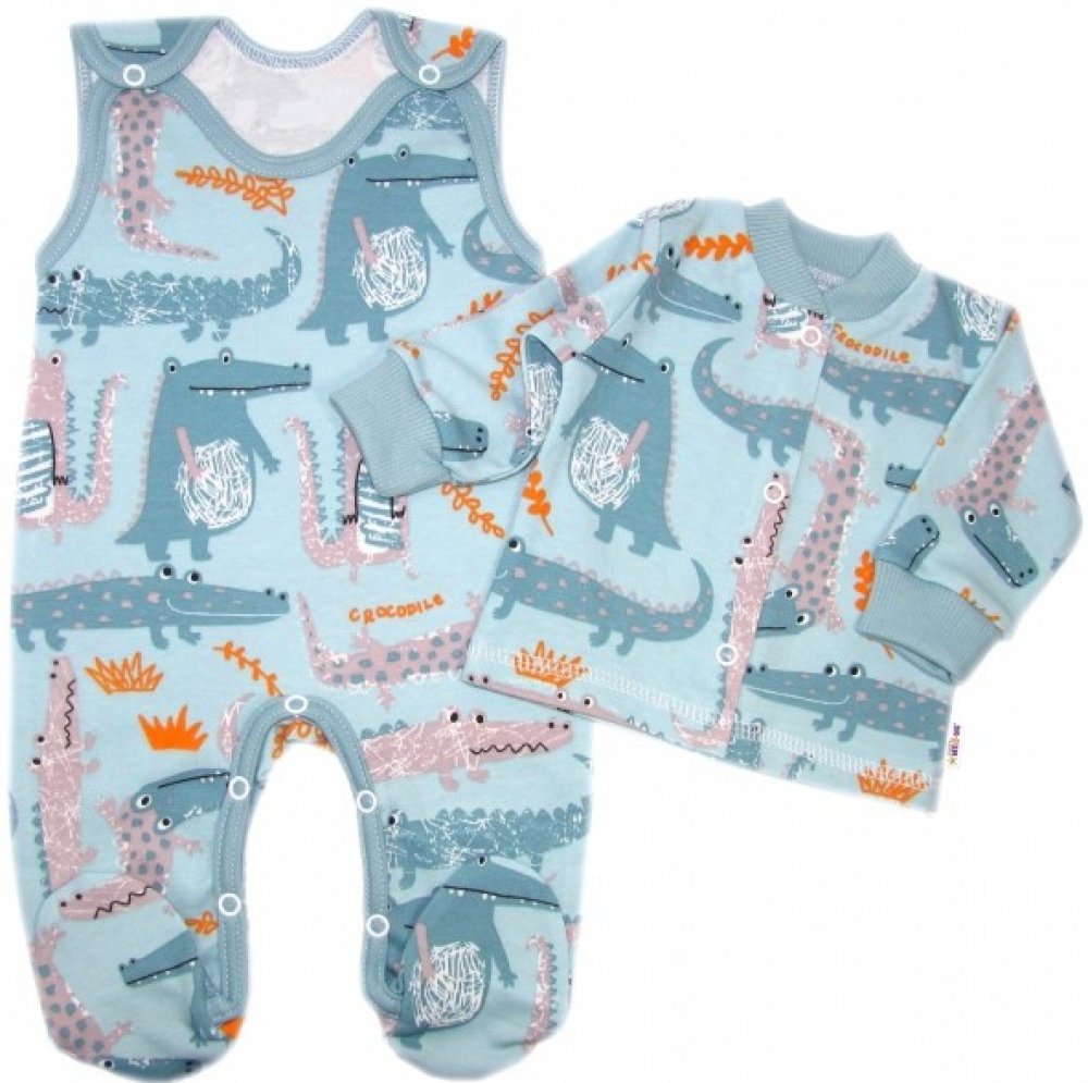 Baby Nellys 2-dílná sada bavlněné dupačky s košilkou Krokodýl Eda
