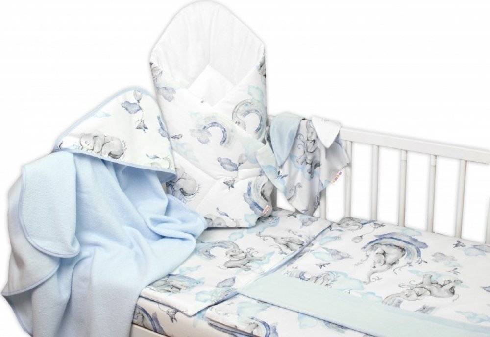 Baby Nellys 6dílná sada Slon a duha modrá/bílá 120 x 90 cm