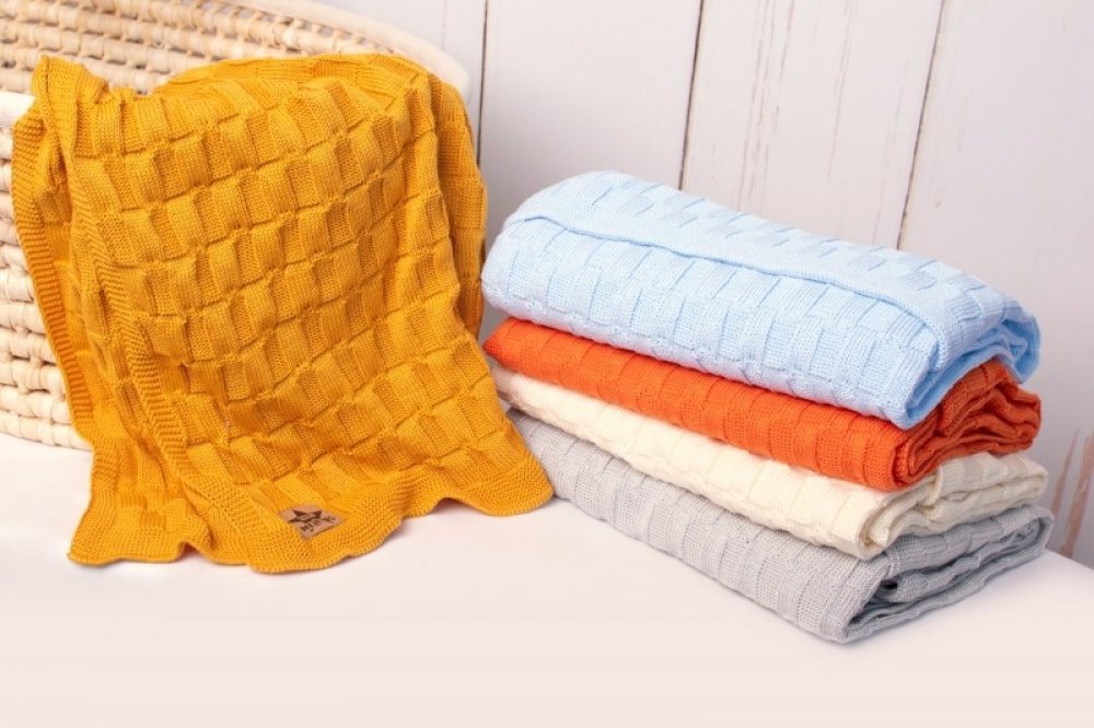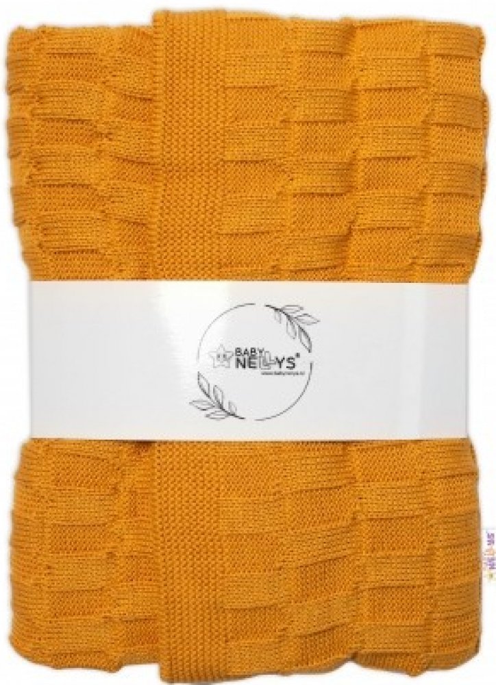 Baby Nellys pletená deka CUBE hořčicová
