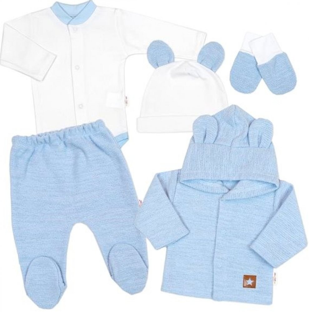 Baby Nellys Pletená sada oblečení pro miminko Star 5D modrá