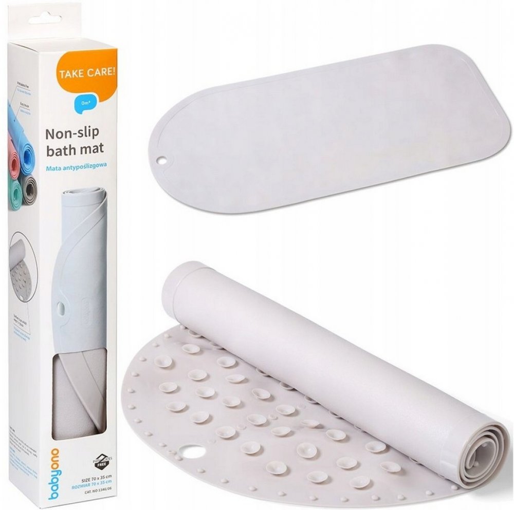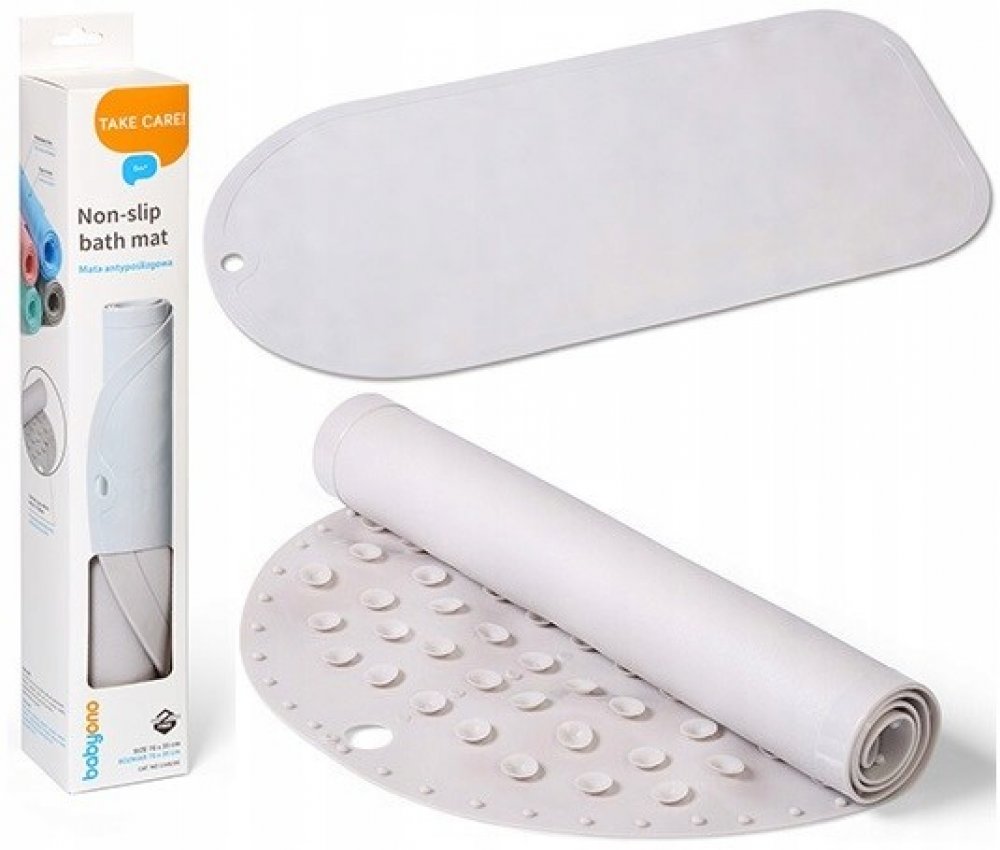 Pro správné upevnění podložky naplňte vanu vodou a poté podložku vložte do vany a rovnoměrně přitlačte ke dnu vany. Naše protiskluzové podložky se dodávají ve dvou velikostech: velké (70 cm x 35 cm) a malé (55 cm x 35 cm). Během koupání by dítě mělo být pod dohledem dospělé osoby. Před prvním použitím a po každém použití podložku umyjte v teplé vodě s dětským mýdlem. Opláchněte a nechte uschnout.