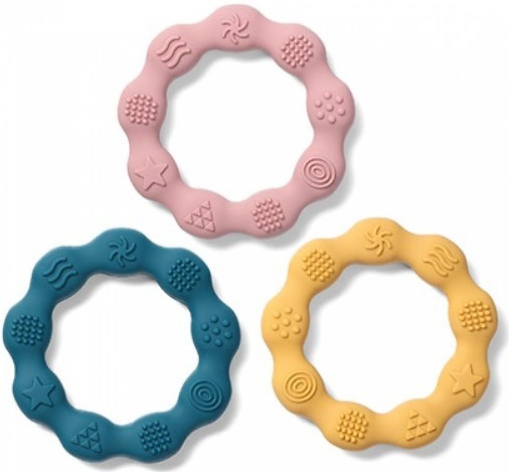 Silikonové kousátko ve tvaru kruhu je nepostradatelnou pomůckou při prořezávání prvních zoubků.