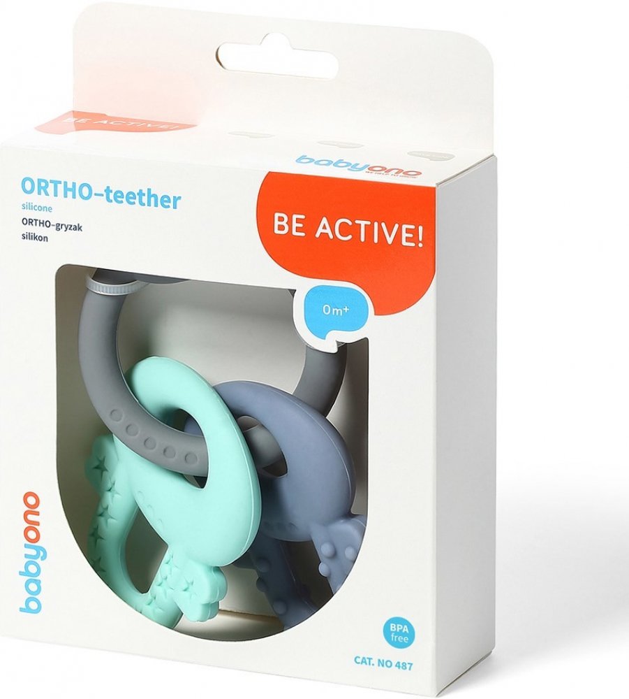 Kousátka ORTHO jsou speciálně navrženy pro potřeby nejmenších dětí. Vlastnosti:- nenahraditelný během růstu zoubků- možost chlazení v lednici (ne v mrazničce)- elastický materiál s vroubkovanou strukturou dokonale masíruje dětské dásně- lehký, dokonale vhodný pro malé ústa a dětské ruce- vyrobeno z odolných a bezpečných materiálů- neobsahuje bisfenol A- zpařte před prvním použitím - nepřevařujte- Materiál: 100% silikon- Rozměry: šířka 12 cm x výška 7 cm- Hmotnost: 0,07 kg