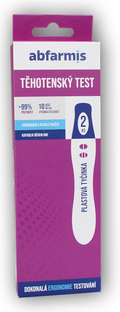 Těhotenský test je vysoce spolehlivý a snadno použitelný, jednokrokový tyčinkový těhotenský test. Díky mimořádné citlivosti a přesnosti dokáže identifikovat případnou graviditu již pátý den po početí, v závislosti na výšce těhotenského hormonu hCG v moči.
