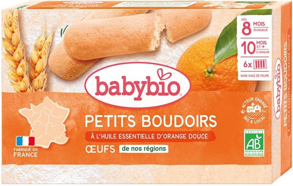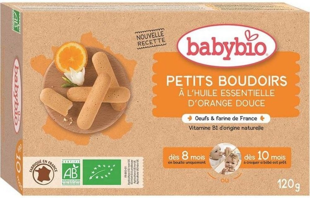Nová receptura pro chutnou svačinku Piškoty Babybio ochucené esenciálním olejem s příchutí sladkého pomeranče poskytnou vašemu dítěti příležitost k poznávání nové chuti a konzistence. Od ukončeného 8. měsíce K prvnímu ochutnávání pro nejmenší jsou sušenky vhodné v kašovité úpravě smícháním s pokračovacím mlékem. Příprava v misce Jednu nebo dvě sušenky rozdrobte ve 150 ml teplého či studeného pokračovacího mléka. Po jedné minutě obsah lžící rozmíchejte na kašovitou texturu. Příprava v kojenecké lahvi Jednu sušenku nadrobte do kojenecké lahve s vlažným pokračovacím mlékem. Po jedné minutě obsah důkladně protřepejte. Pro podávání musí být sušenka zcela rozpuštěna. Od ukončeného 10. měsíce Sušenky jsou tvarem a velikostí uzpůsobeny k přímé konzumaci v období, kdy dítěti začínají růst první zoubky. Pokud vaše dítě splňuje níže uvedené podmínky, může začít sušenky kousat: Má alespoň dva zoubky Dokáže rozžvýkat kousek rohlíku Dokáže jíst pokrmy s malými kousky Dokáže sedět samo v kojenecké židli Výrobek obsahuje lepek. Může obsahovat stopy arašídů, sóji, sezamu, mléka a ořechů. V jedné krabičce je 6 sáčků po 4 kusech. Složení pšeničná mouka třtinový cukr obilný škrob celá vejce řepkový olej esenciální olej ze sladkého pomeranče prášek do pečiva Vitamin B1 (thiamin) DŮLEŽITÉ Pro bezpečnost dítěte je důležité, aby bylo pod dohledem dospělé osoby. Při jídle musí dítě sedět rovně.