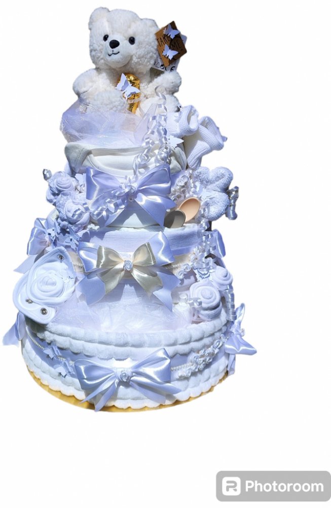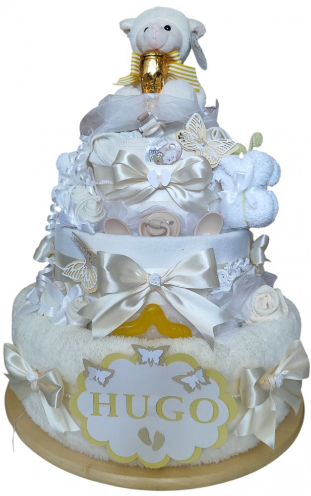 BabyDort Třípatrový neutrální plenkový dort pro miminko křtiny PREMIUM