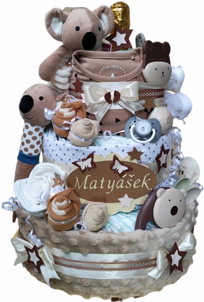 BabyDort třípatrový plenkový dort pro miminko PREMIUM Koala
