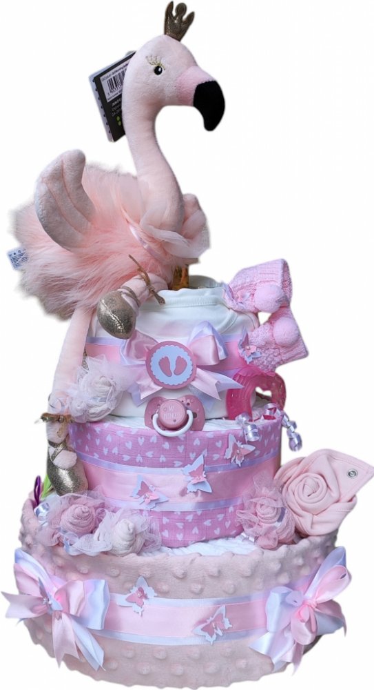 Jemný plenkový dort v růžových světlých odstínech je přímo stvořený pro novorozenou priceznu. Nádhernou plyšovou labuť si malá princezna zamiluje.