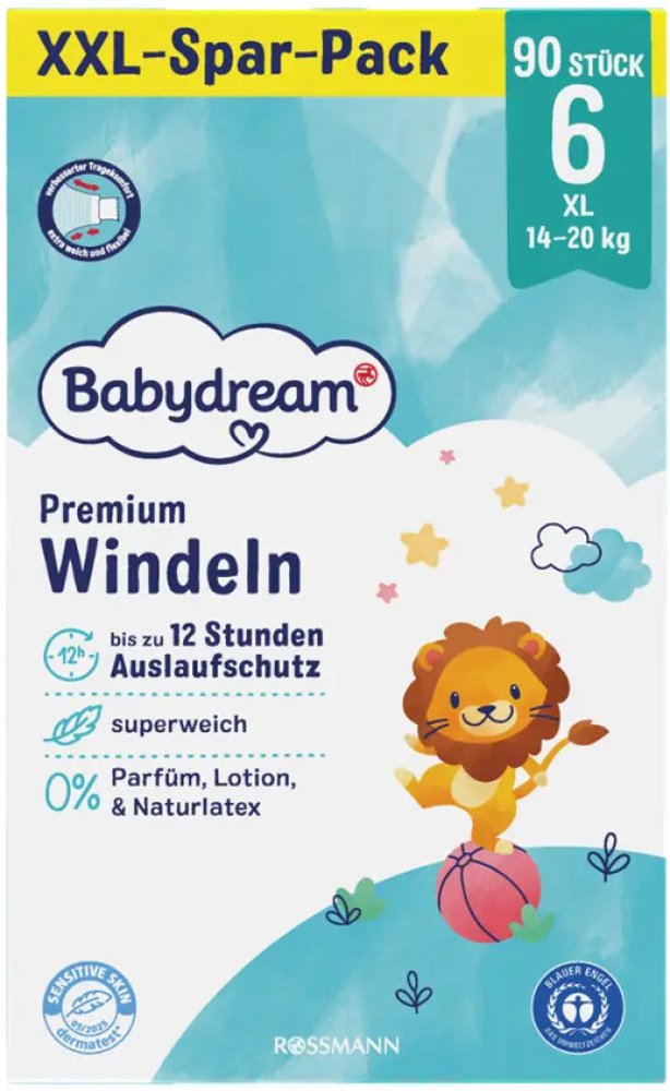 Sametově hebké jednorázové plenky Babydream Premium XL pro děti od 14 do 20 kg poskytují optimální ochranu citlivé pokožky vašeho dítěte. Zůstávají suché až 12 hodin a mimořádně rychle absorbují tekutinu.