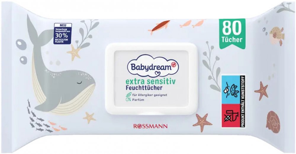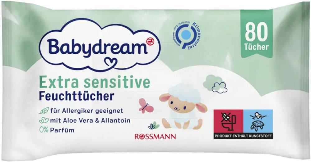 Naše mimořádně jemné vlhčené ubrousky Babydream velmi jemně čistí citlivou pokožku. Ubrousky jsou prakticky uspořádány jeden do druhého, což umožňuje okamžité uchopení dalšího kapesníku. Díky tomu můžete rychle sáhnout po dalším kapesníku a zároveň chránit druhou rukou dítě.