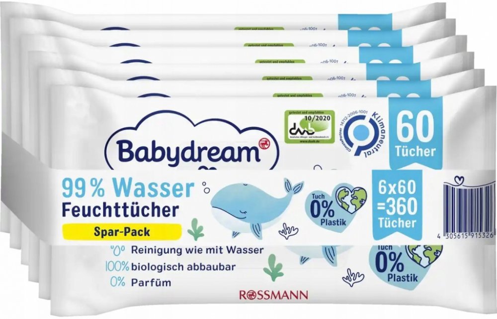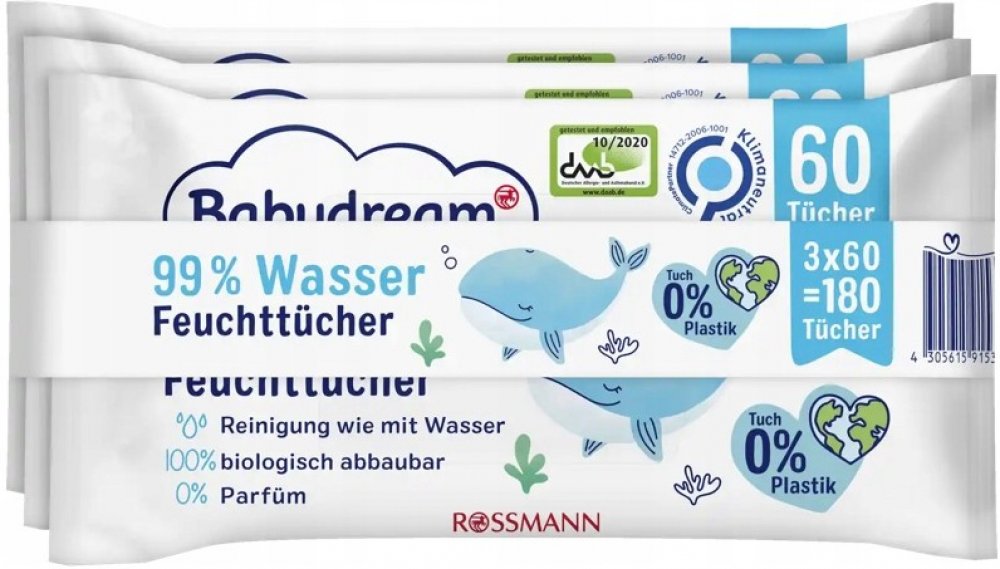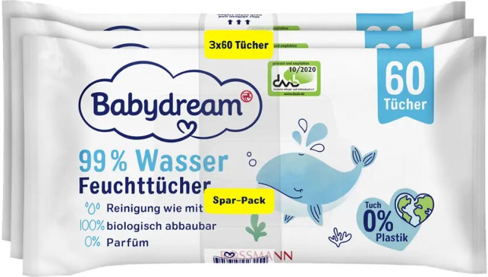 Babydream Vlhčené ubrousky s 99 % vody 180 ks