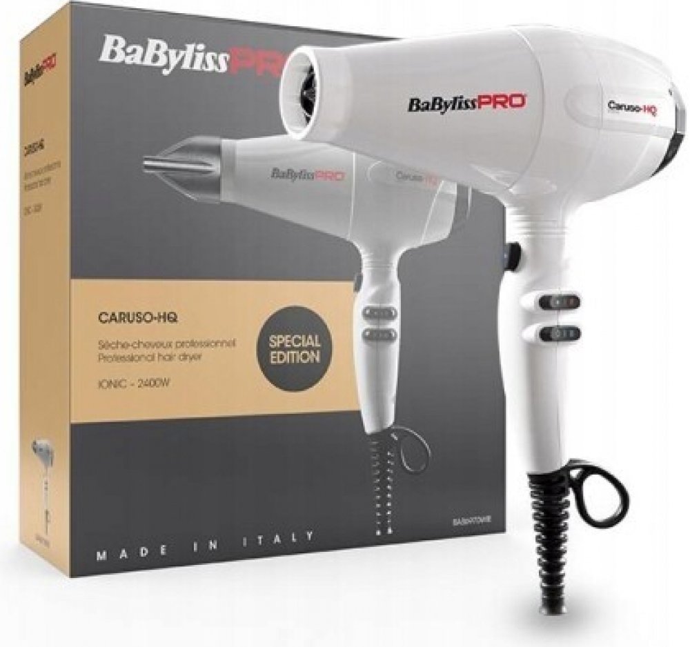 Babyliss Pro Fén se dvěma nástavci Caruso HQ 2400W BAB6970 BíláBABYLISS FÉN CARUSO HQ 2400W BAB6970 BÍLÁ