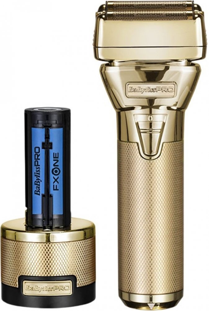 Profesionální holicí strojek BaByliss PRO FXONE GoldFX Shaver s celokovovým tělem, inovativní dvojitou titanovou planžetou a patentovanou technologií DOUBLE FOIL, výkonným a digitálním motorem N1 s 10 000 ot./min a výměnnou baterií zajišťující až 4hodinový provoz.