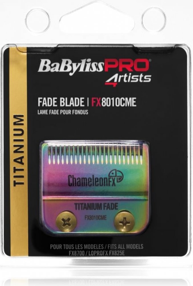 Náhradní titanová střihací hlavice v duhovém designu pro strojky BaByliss Pro. Šířka hlavice je 45 mm, výška 38 mm. Fade čepel má plochou protáhlou řezací plochu, která usnadňuje vertikální zastřižení. Ideální pro přesný a čistý střih. Určeno pro modely: FX8700, LOPROFX FX825E.