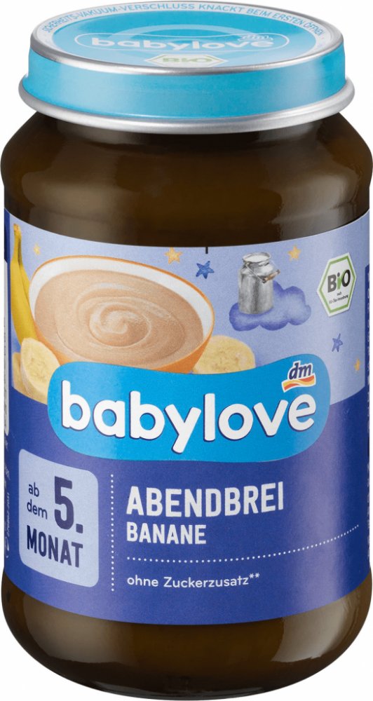 babylove bio mléčná večerní kaše s banánem je příkrm určený pro kojence od 5. měsíce věku. Příkrm neobsahuje přidaný cukr¹, aroma a lepek. Příkrm s jemně rozmělněnými kousky je vhodný jako večeře, dezert nebo svačinka mezi hlavními jídly.## ¹ obsahuje přirozeně se vyskytující cukry.