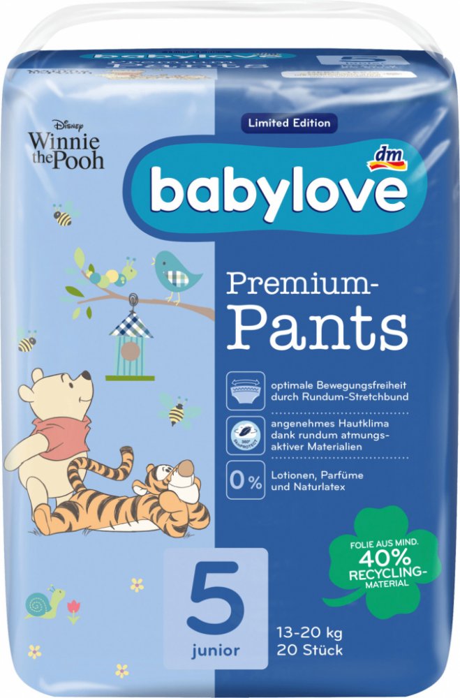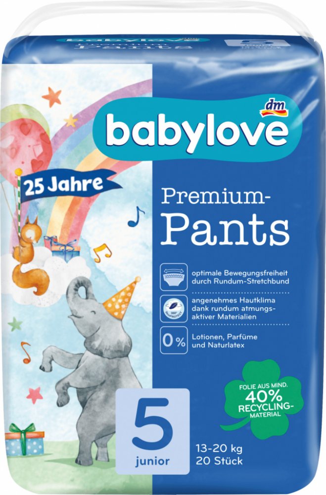 babylove Premium plenkové kalhotky junior ve velikosti 5 jsou obzvláště jemné k pokožce, bez obsahu parfemace a přírodního latexu. Prodyšný materiál poskytuje ochranu až po dobu 12 hodin ve dne i v noci. Strečové pásky umožňují pohyb bez omezení, technologie 360° SkinPROTECT podporuje přirozenou hydrataci pokožky díky prodyšným materiálům. CapturePocket™ dodatečná ochrana proti protečení na zádech. babylove Premium plenkové kalhotky se snadno svlékají a oblékají a jsou tak ideální k nacvičování používání nočníku.