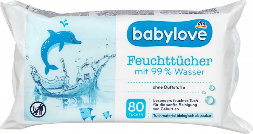 babylove vlhčené ubrousky s 99% obsahem vody jsou díky své receptuře vhodné k jemnému čištění dětské pokožky. Lze s nimi jemně vyčistit také ruce, obličej nebo tělo. Materiál ubrousků je vyroben z biologického materiálu a je 100 % biologicky odbouratelný. Kožní snášenlivost byla testována a potvrzena v příslušných dermatologických testech na velmi citlivé a alergické pokožce. Ubrousky jsou pH neut...