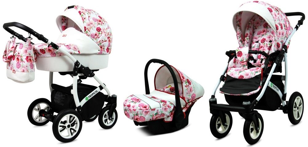 Tropical 3v1 je multifunkční kočárek z nejnovější kolekce známé evropské značky BabyLux. Lze jej použít jako hluboký kočárek, procházkový a autosedačku s možností montáže na rám kočárku. Vyrobeno z nejkvalitnějších tkanin typu Exclusive s certifikací OEKO-TEX STANDARD 100 v barvě Hibiscus, která nejenže působí extrémně elegantně, ale je také velmi odolná proti vyblednutí a vlhkosti. Exkluzivní tkaniny také zajišťují cestujícímu dítěti ideální teplotu a vlhkost vzduchu bez ohledu na převládající povětrnostní podmínky. Pro maximální funkčnost a komfort používání mnoho prvků kočárku, jako je vodítko, rukojeť pro přenášení korbičky, zábrana a opěrka nohou kočárku, je vyrobeno z odolné ekokůže. Díky tomu bude výrobek sloužit po dlouhou dobu.