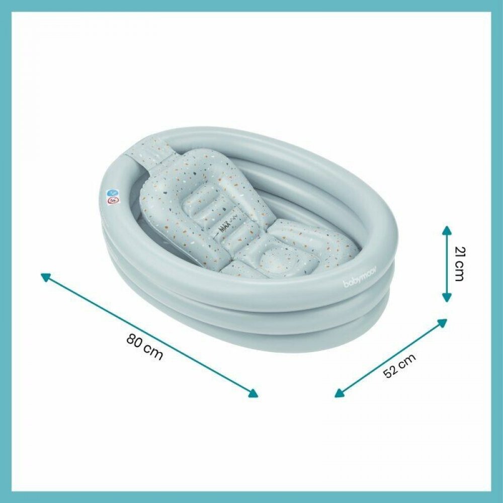 Nafukovací vanička 2v1, kterou lze použít jak doma, tak i venku.s výpustí a zpětným ventilemnafukovací lehátko pro novorozenceu starších dětí (které se již umí posadit) se lehátko vyfoukne, sroluje a umístí na vnější stranu vaničkymožno využít i jako bazének v horkých, letních dnechrozměr: délka 80cm x šířka 52cm x výška 21cmskladné, ideální na cestovánídíky nafukovacímu dnu velmi komfortní a pohodlnévhodné pro děti do 0 do 12 měsícůmax. nosnost 9kgv souladu s EN 17072:2018Tento výrobek používejte vždy pod dohledem dospělé osoby. Mějte na paměti, že děti, zejména batolata, jsou vystaveny vysokému riziku utonutí. Děti se mohou utopit i ve velmi malém množství vody. Nenechávejte je ve vodě, ani v její blízkosti bez dozoru dospělé osoby, a to ani na krátkou chvíli. Nikdy nepřenášejte vaničku i s dítětem. Před koupáním vždy ověřte teplotu vody. Vaničku při koupání neumisťujte do vyvýšených poloh, jako jsou např stoly apod., předejde se tak případnému svržení a úrazu. Před každým použitím výrobek zkontrolujte. Při prvních známkách poškození nebo znehodnocení výrobek zlikvidujte. V době, kdy výrobek nepoužíváte, jej skladujte na uzavřeném, čistém a suchém místě. Nenechávejte jej vystavený přímému slunečnímu záření nebo zdrojům tepla. Neslouží jako hračka. Před použitím odstraňte obal a uchovávejte jej mimo dosahu dětí.BABYMOOV GROUPParc Industriel des Gravanches 16, rue Jacqueline Auriol63051 Clermont-Ferrand, Francietel: +04 73 28 60 00email: contact@babymoov.com