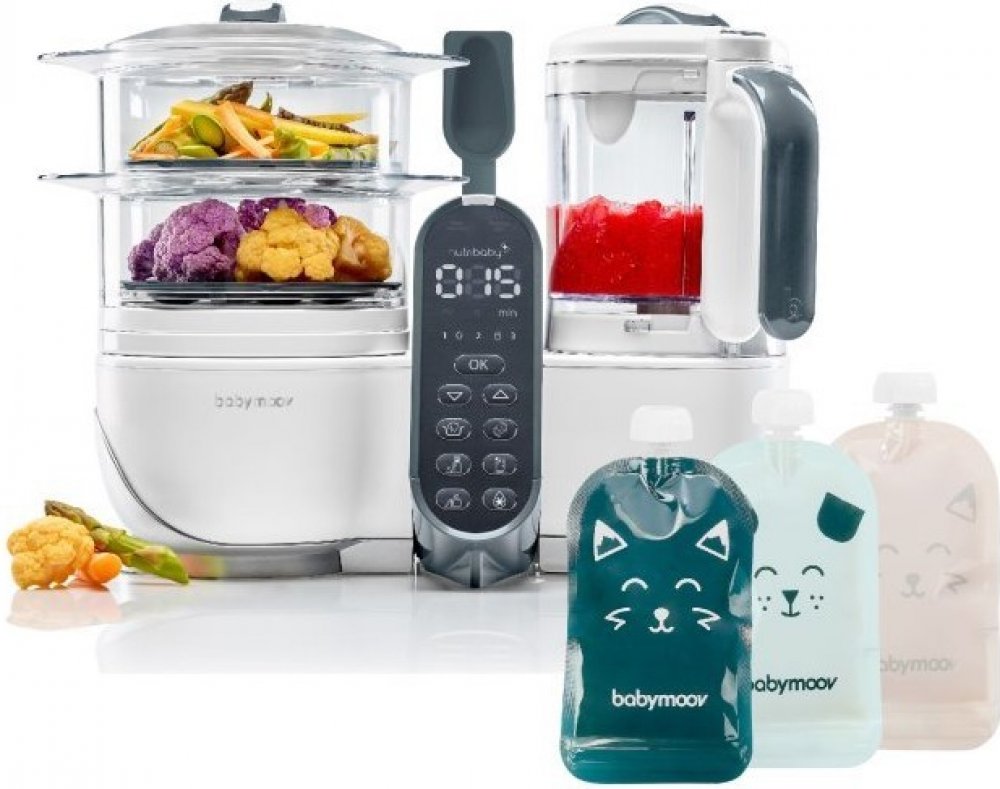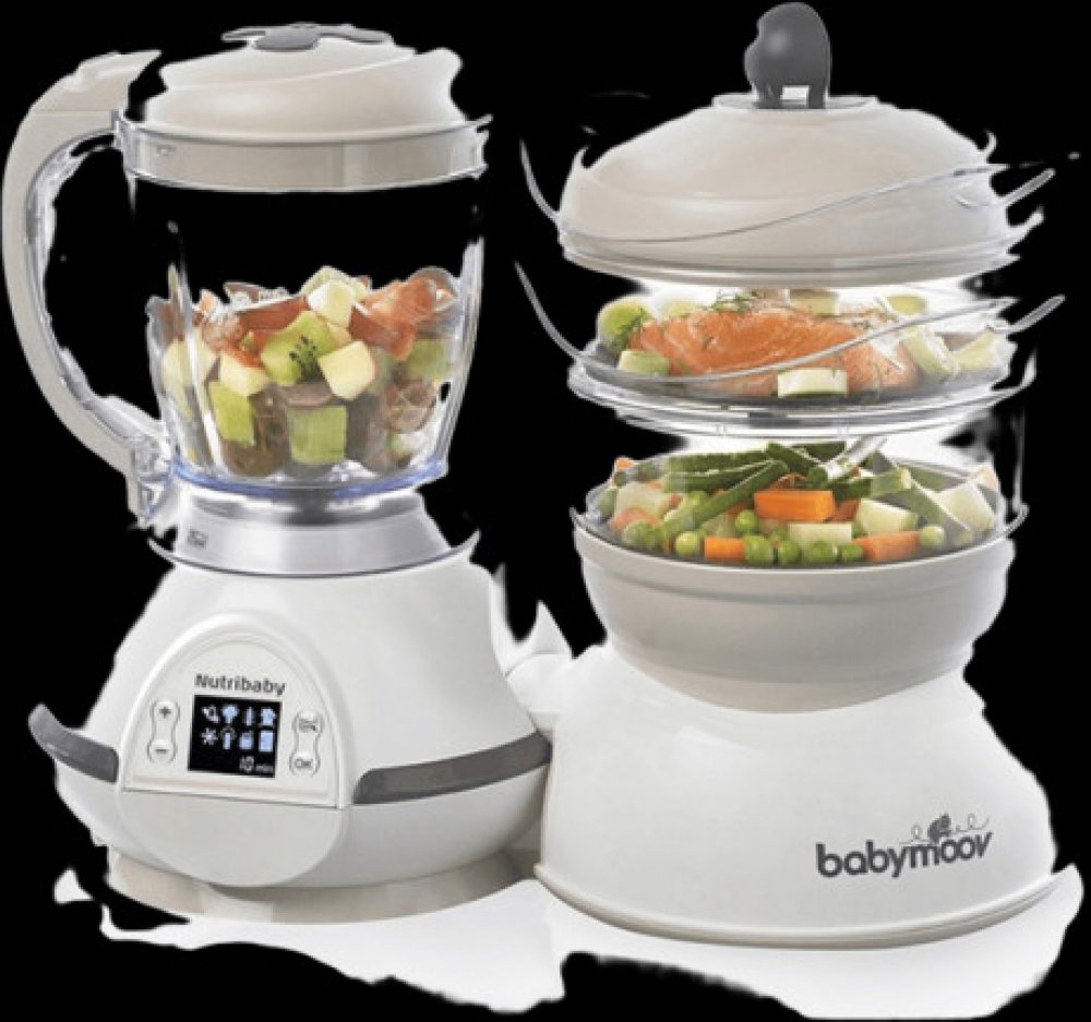 Multifunkční přístroj BABYMOOV Nutribaby připraví domácí jídlo velmi snadno! Tento kuchyňský robot současně vaří v páře jídlo a mixuje pyré. Příprava dětské stravy nebyla doposud snadnější!