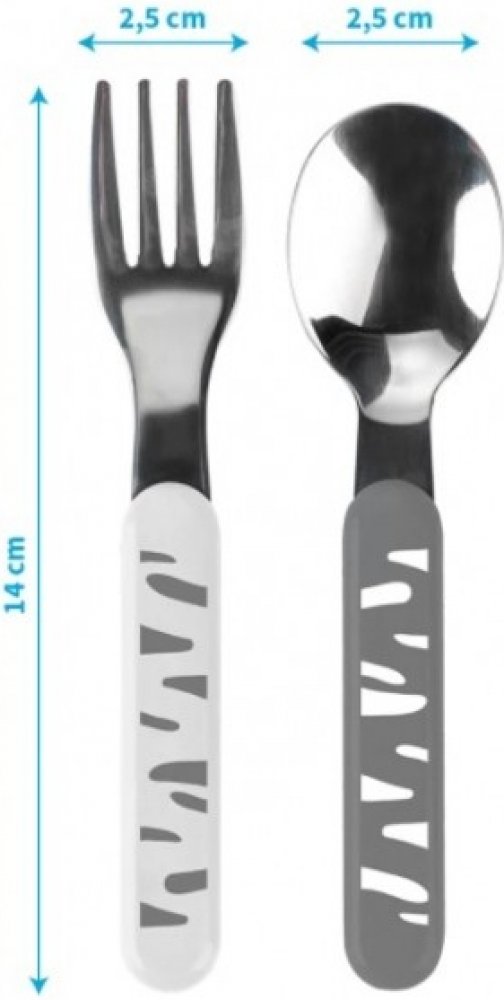 Sada příborů z nerezové oceli je velmi užitečná, když se učíte samostatně jíst. Jejich velikost byla přizpůsobena malým ručkám dítěte. Vidlička a lžíce jsou vyrobeny z vysoce kvalitní nerezové oceli. Design příborů je v souladu se současnými trendy interiérového designu.