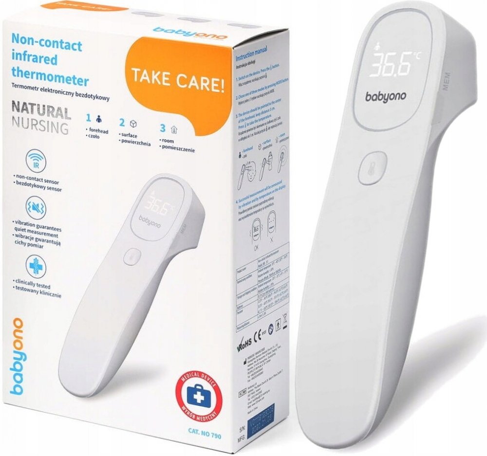 Bezdotykový infračervený teploměr BabyOno se řadí mezi zdravotnícke pomůcky.