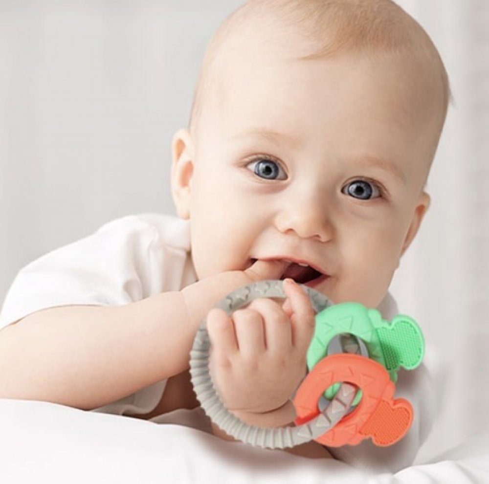 Nerovnosti na povrchu kousátka Babyono ORTHO, zejména v kombinaci s gelem, masírují dásně a přinášejí úlevu.