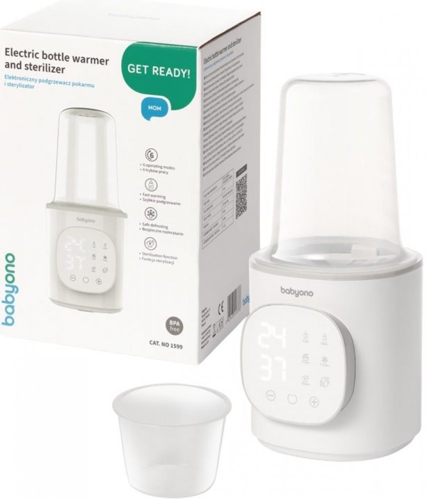 BabyOno Electric Bottle Warmer and Sterilizer, 1 ks, Sterilizátory lahví a dudlíků pro děti, Každý, kdo má doma malé dítě dobře ví, jak je čas vzácný. Ohřívač lahví BabyOno Electric Bottle Warmer and Sterilizer vám pomůže mléko ohřát raz dva a udrží jej v optimální teplotě. Zapomeňte na připálené mléko a neustálé stání u plotny, s ohřívačem lahví tato starost odpadne. Vlastnosti: rychle a rovnoměrně ohřívá mléko i jídlo rozmrazuje jídlo sterilizuje všechny typy kojeneckých lahví a příslušenství hodí se pro většinu typů lahví jednoduché ovládání rychlý – sterilizuje do pár minut funkce automatického vypnutí