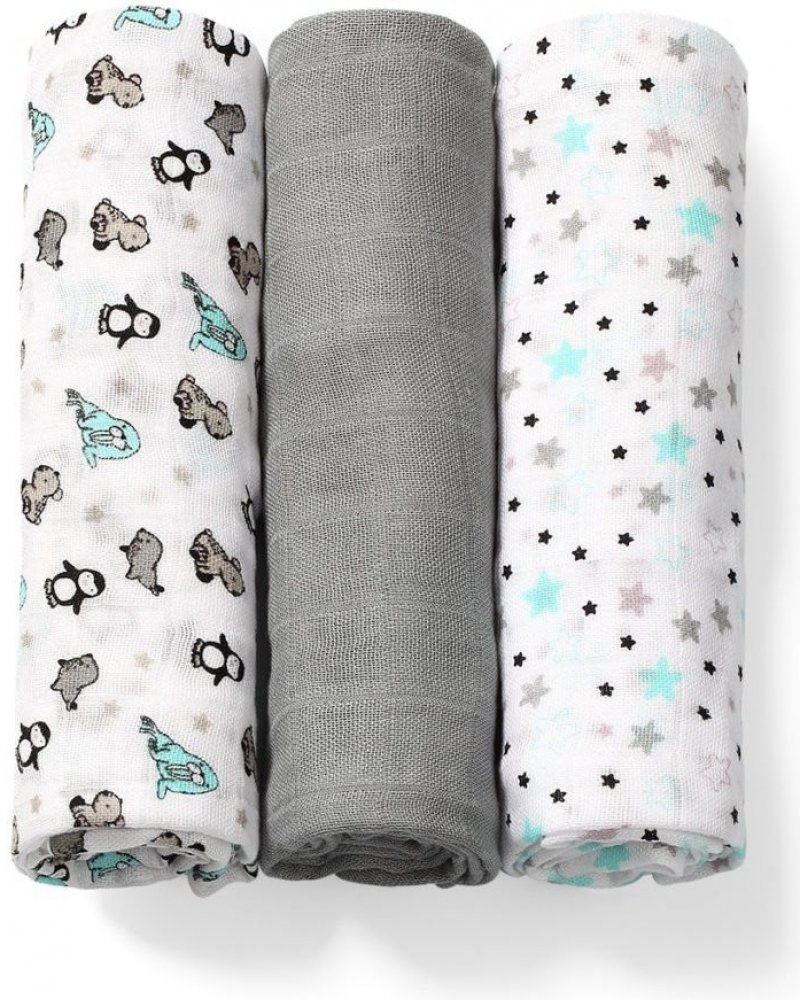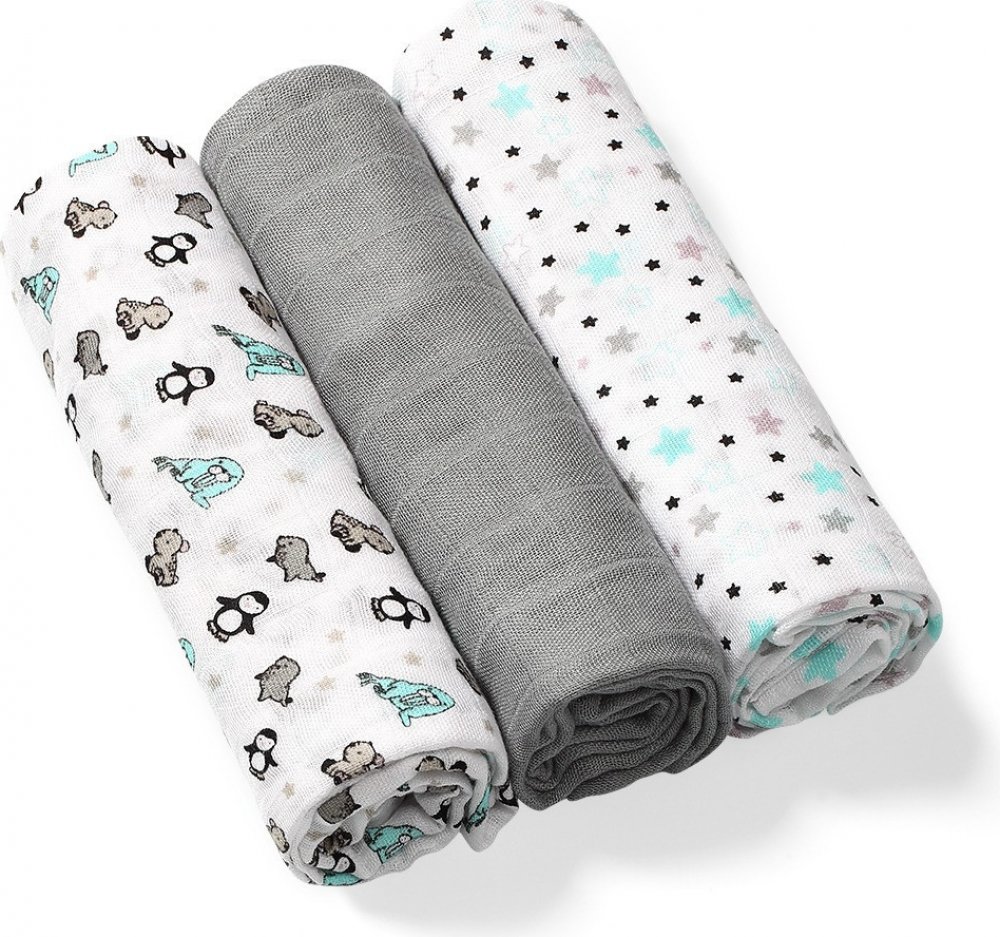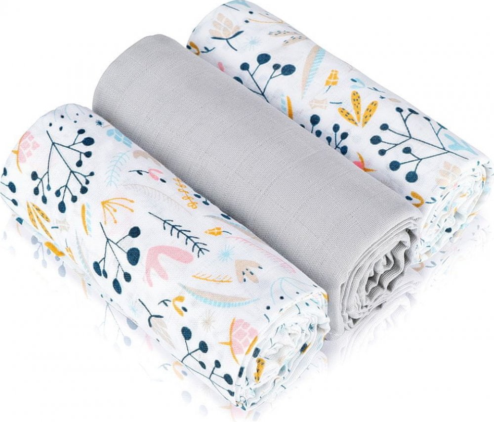 BabyOno Mušelínové plenky Šedá 3 ks