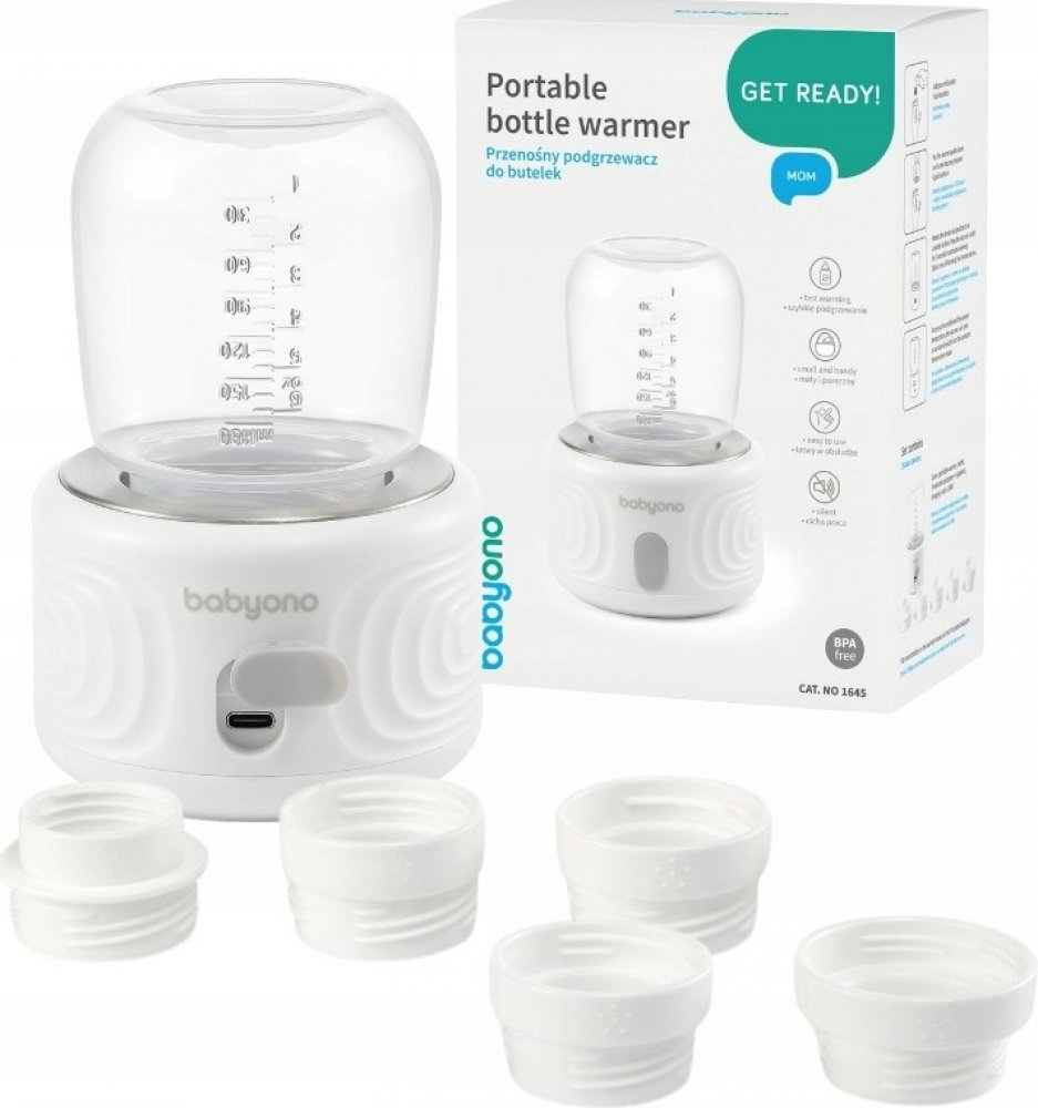 Díky své kompaktnosti jej můžete snadno vložit do kabelky a vzít s sebou na výlet. Ideální na cestu autem, letadlem nebo procházky. S integrovanou baterií může zařízení fungovat až 8 hodin. Ohřívač má 5 vyměnitelných adaptérů, což zaručuje jeho kompatibilitu s většinou kojeneckých lahví dostupných na trhu.