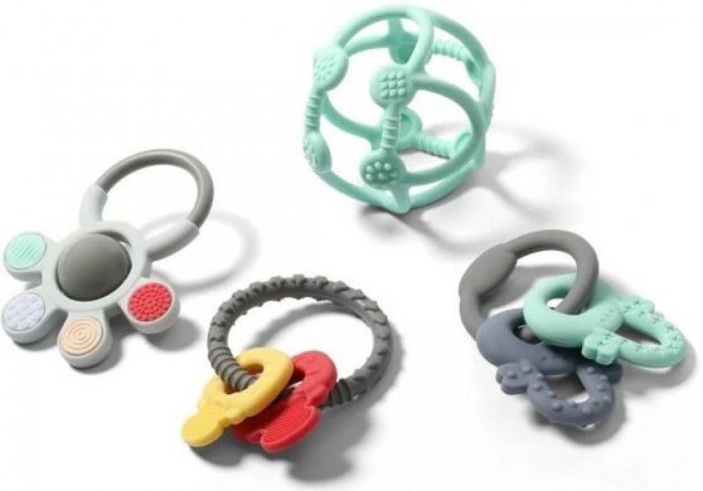 - elastický materiál s vroubkovanou strukturou dokonale masíruje dětské dásně