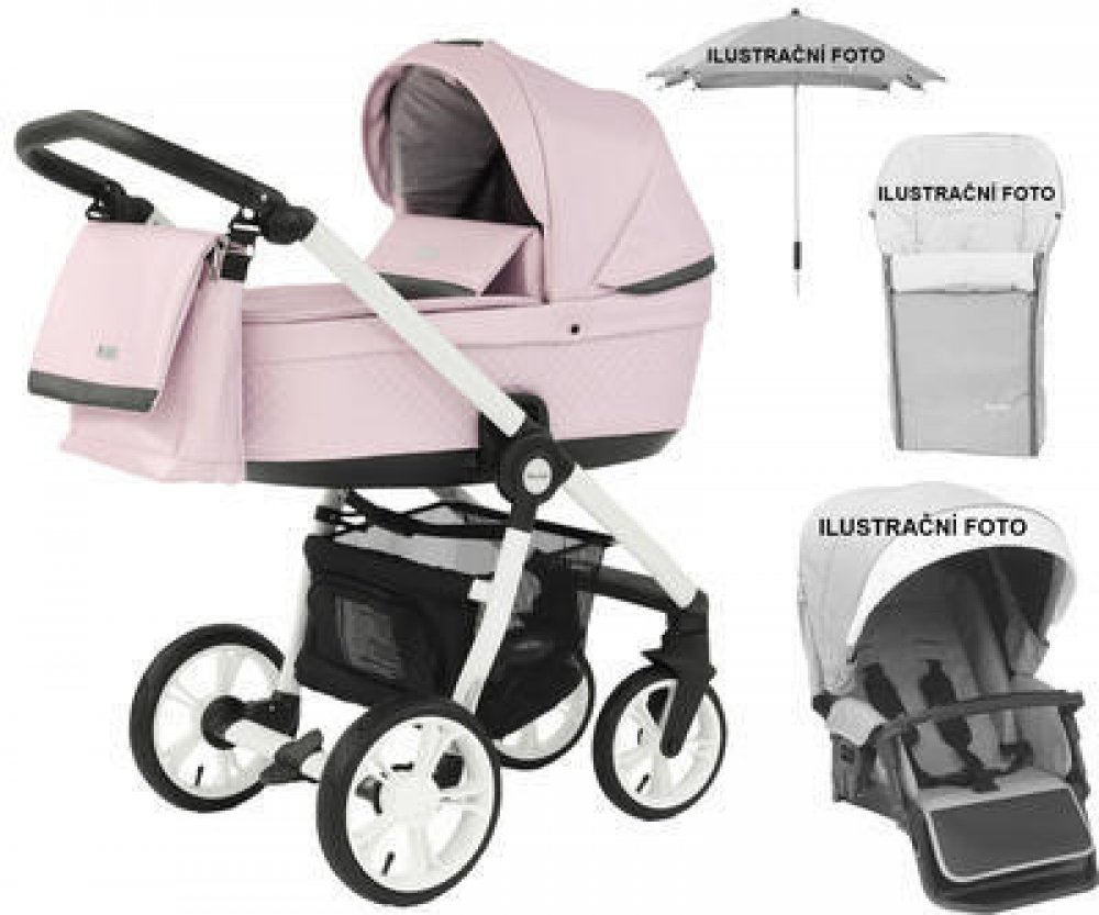 Součástí hlubokého kočárku Prestige3 je také odpovídající textilní sada – se sedací částí vhodnou k umístění na rámu směrem k rodiči nebo do okolí, s nánožníkem, fusakem, přebalovací taškou a slunečníkem. Dodatečně si můžete zakoupit i kompatibilní autosedačku.