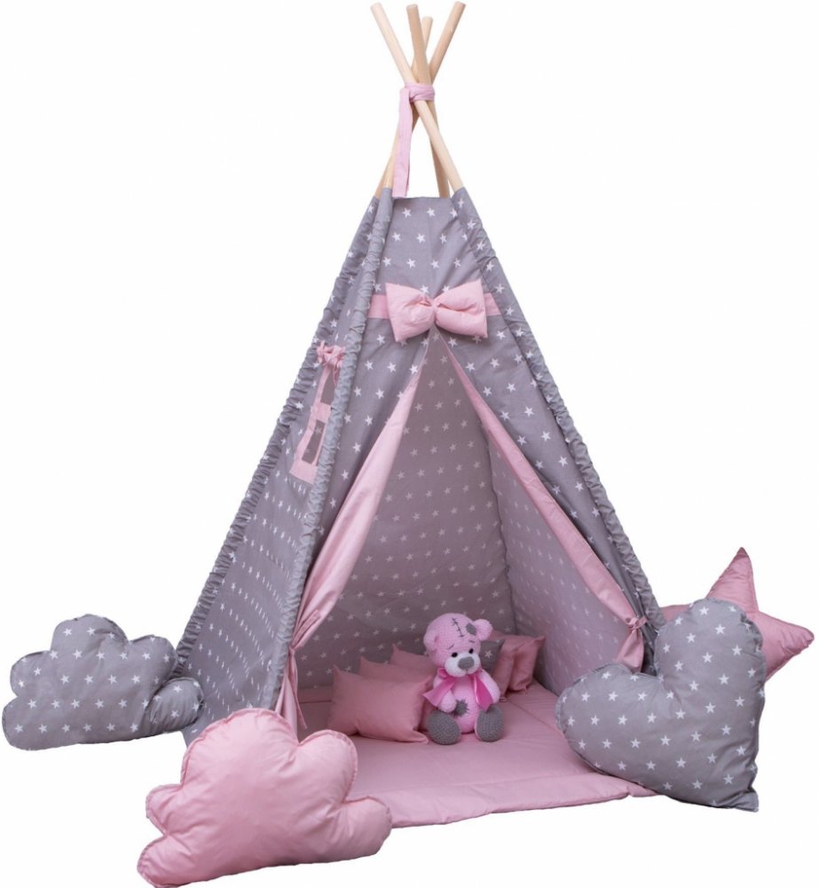 Rádi byste pro své ratolesti vytvořili místo, v němž budou mít své malé království? Pak byste měli zvážit nákup dětského stanu, kde budou mít soukromí a prostor na své hračky. Stan má tvar týpí, v němž si mohou děti nejen hrát na indiány, ale i odpočívat. BabyTýpka teepee Stars pink můžete dát do pokojíčku, kam krásně zapadne. Děti potěší šedo-růžová barva s hvězdičkami. BabyTýpka teepee Stars pin...