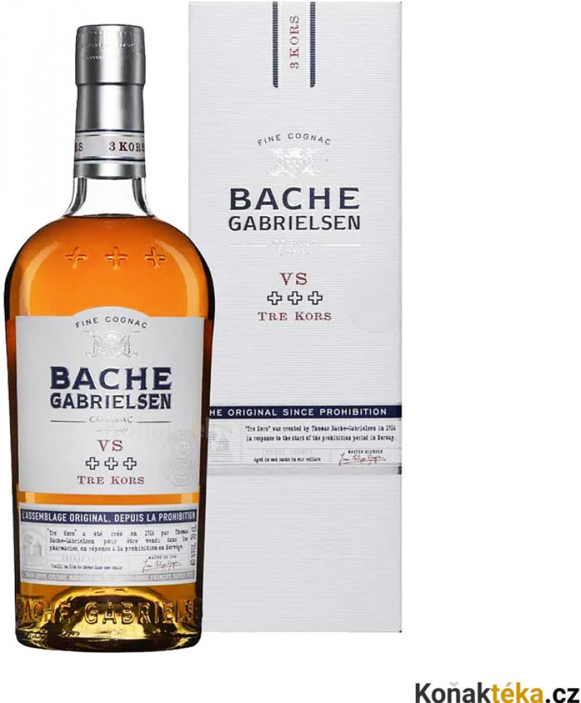 Koňak Bache Gabrielsen VS Tre Kors je mladá směs eaux-de-vie, která se skládá ze 75 % z Fins Bois, přičemž zbývajících 25 % bylo vybráno z Grande Champagne a Petite Champagne.