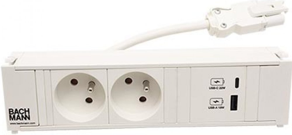 Použití: Box s 2 napájecími zásuvkami CZ a 2 nabíjecími porty USB (A a C), určený pro montáž do krátkého rámu systému CONI.;
