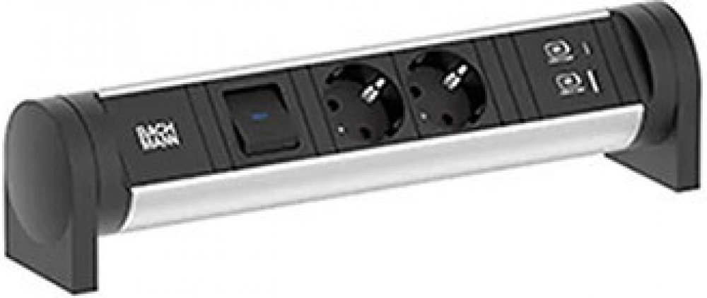 Horizontální napájecí lišta s montáží na desku stolu se 2x zásuvkami DE, vypínačem, a zdrojem 22W (USB A + USB C).